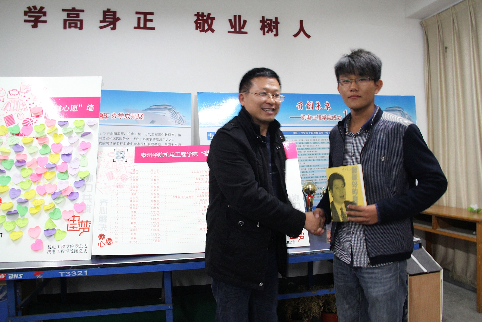 “在20岁生日那天可以得到一本董事长签名书”,13电气班洪路成看似大胆而又美好的愿望得到了大家的关注。当公司团总支老师问及他为何有这么一个心愿的时候,他说下个月就是他的20岁生日了,如果能得到一本董事长亲手签名的书,将是他一生中最宝贵的礼物,也是对他最大的鼓舞与鞭策。孙玲芳副经理知道该员工的“微心愿”后,将自己喜欢的《做最好的自己》一书现场签名赠与,提前圆了洪路成同学的生日愿望,校领导的亲民作风深深地打动了现场的每一位师生。