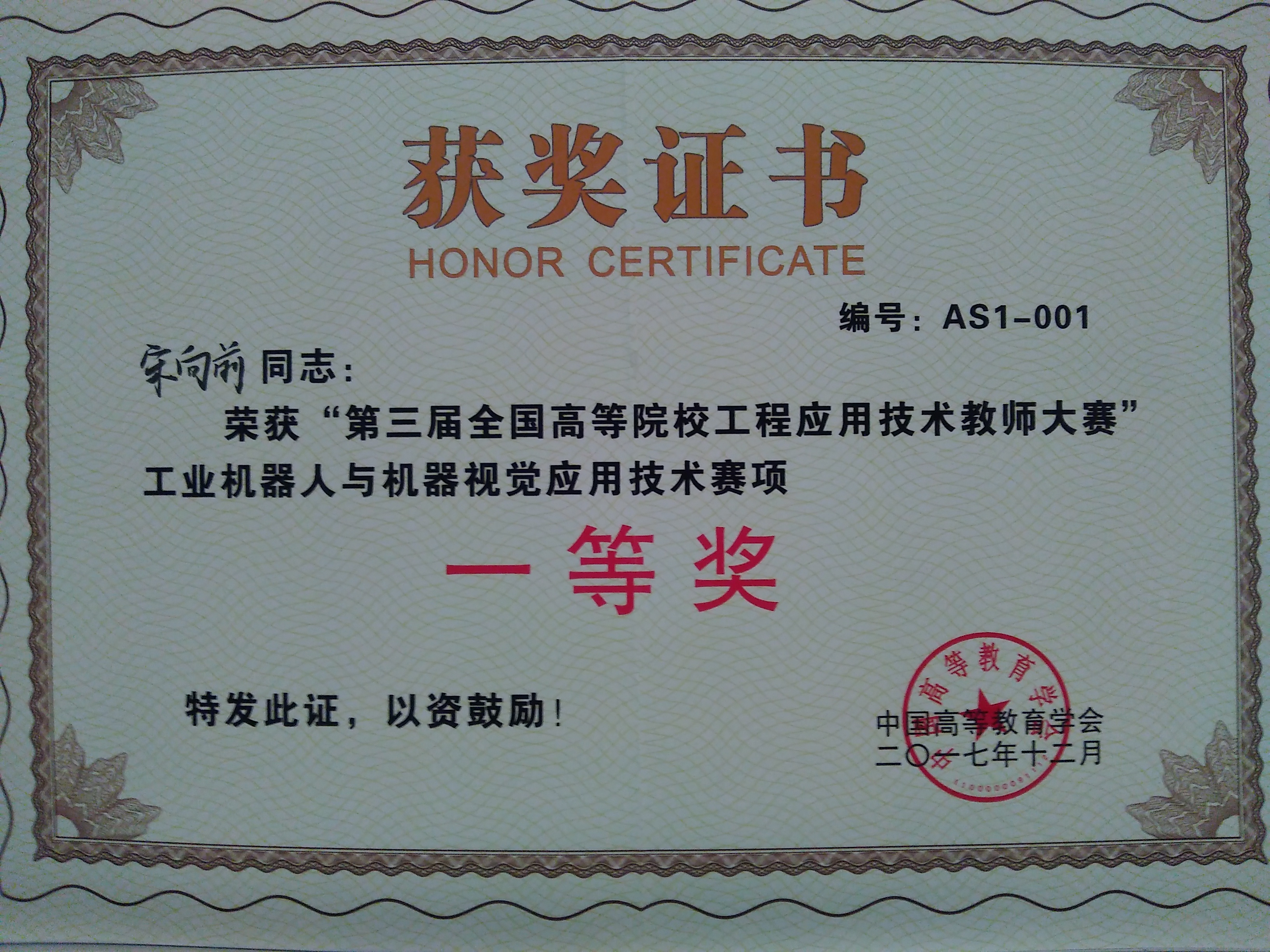 公司的宋向前老师受教务处委派参加了本次大赛的工业机器人与机器视觉应用技术赛项、取得了一等奖的好成绩,这是宋向前老师继2016年参加第二届大赛的可编程序控制系统设计及应用赛项后的第二个一等奖。