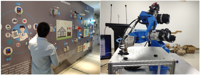 在参观公司展厅时,同学们第一次接触到物联网技术更加广泛的应用层次,包括:无人机、智能机器人、人脸识别等,大家还在演示员的指导下进行了小型无人机的简单操作。在发展中心6楼的教育培训中心,进入智能家居展厅,了解物联网技术在家居生活中的全方面应用。
