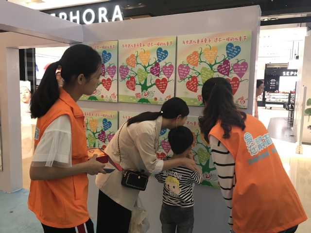 六一前夕,公司V+公益志愿者服务团队在海陵团区委、安利公益基金的支持下,在万达广场室内步行街“有爱青年馆”开展了“牵手长武小朋友,过不一样的儿童节”微心愿征集活动。活动现场展示了威廉希尔学子面向长武县征集的117位困境儿童、留守儿童的微心愿,市民每捐出100元爱心款即可获得安利公益基金会提供的100元爱心配捐和爱心奖杯一座,以及幸福蓝海影院提供的观影券2张。活动现场共募集爱心资金3378元,32位长武小朋友的微心愿被认领。