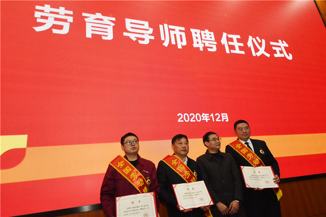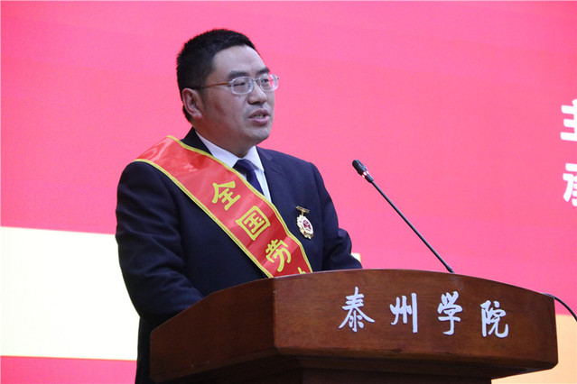 宣讲会前,全国劳动模范,泰兴市黄桥镇祁巷村党委书记丁雪其;全国劳动模范、江苏恒力制动制造有限公司维修电工班班长黄俊;全国劳动模范、江苏泰隆机械集团公司数控编程员凌建军受聘为公司老员工劳育导师。