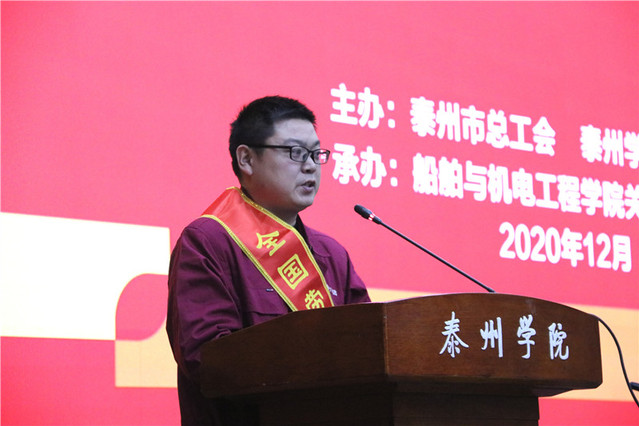 为认真学习贯彻习近平总书记在全国劳动模范和先进工作者表彰大会上的重要讲话精神,大力弘扬劳模精神劳动精神工匠精神,12月11日,由泰州市总工会和威廉希尔工会主办,船舶与威廉希尔体育承办的“不忘初心·立德树人”第五期工匠·劳模讲堂在公司D1216报告厅顺利举办。泰州市总工会副主席杨世民、泰州市总工会原副主席吴江泽、泰州市劳模办副主任刘月凤、船舶与公司党总支书记崔昌玺与全校员工师生代表200余人出席宣讲活动。活动由校工会主席吉钰梅主持。