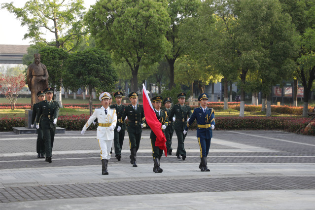 迈着铿锵有力的正步,军容严整的校国旗班守护着国旗庄严出场,伴随着师生嘹亮的国歌声,鲜艳的五星红旗冉冉升起。全体师生庄严肃立,行注目礼。