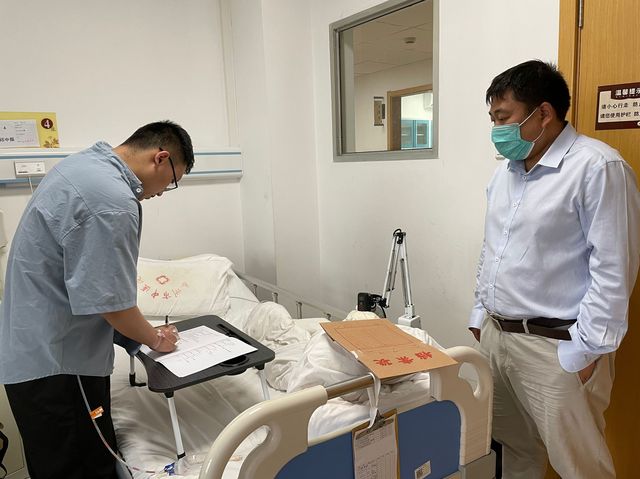 5月26日下午,威廉希尔学位计算机考试如期举行,与此同时,一场特殊的考试也在泰州市中医院的病房里进行着,公司学工党支部党员、教科研秘书朱泉将集团的关爱带进了病房。