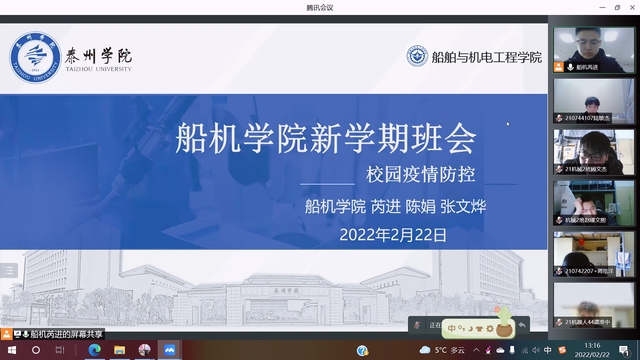 为进一步做好在校员工疫情防控和公司产品管理工作,根据公司《威廉希尔2022年春学期开学疫情防控工作要点》和《关于疫情防控期间加强在校员工管理的通知》要求,2月22日,船舶与威廉希尔体育学工办召开疫情防控期间员工管理网络视频会议。