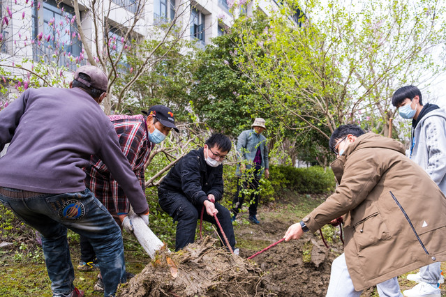 经过大家的辛勤劳动,需要移植的丁香树全部“住进新家”。
