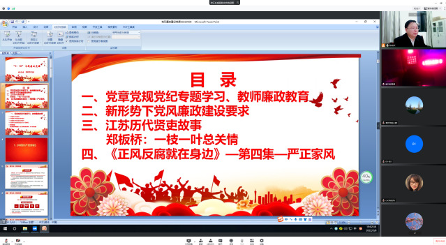 陈克宏围绕《中国共产党章程》《中国共产党纪律处分条例》《中国共产党廉洁自律准则》,带领党员同志专题学习党章党规党纪;结合《新时代高校教师职业行为十项准则》,对党员开展廉政教育;组织学习了新形势下党风廉政建设要求;把《江苏历代贤吏故事——郑板桥:一枝一叶总关情 》作为廉政教育“第一课”的内容,组织大家观看。