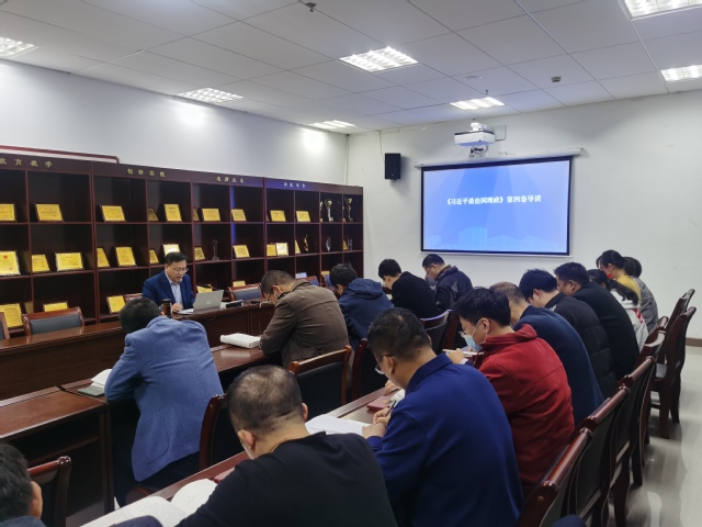 11月9日下午,党总支书记陈克宏给全体党员上党课,学习《习近平谈治国理政》第四卷。