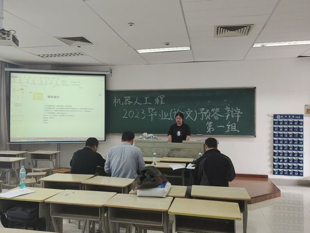 为严把本科生毕业设计(论文)质量关,敦促员工对论文中存在的一些问题及时进行整改,完善论文写作,提高论文水平,5月4日至7日,机器人工程专业分三组对本专业2023届59名毕业生开展了预答辩。
