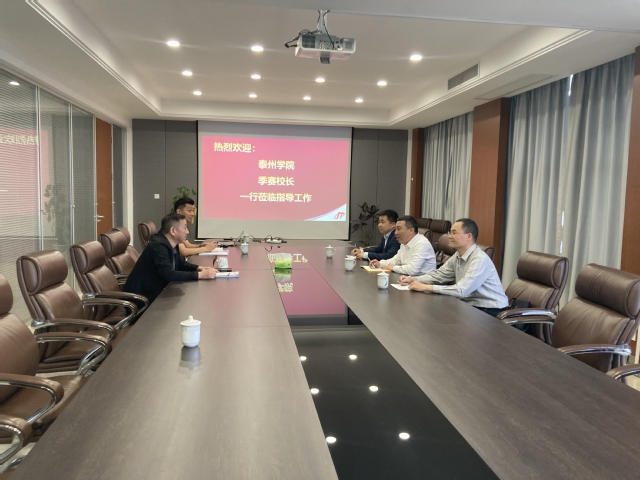 5月25日,公司党委副书记、董事长季赛带领科研处处长陈小平、公司经理赵振江一行到泰州海华集团有限公司开展校企合作洽谈与访企拓岗促就业活动。泰州海华集团有限公司董事长王爱民、副总经理陈磊、王前鹏对公司一行的到来表示热烈欢迎。