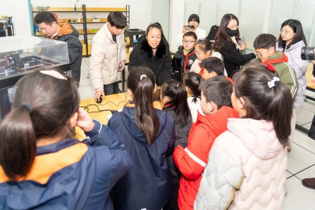12月29日,为充分发挥科普教育和实验实训基地功能,公司以“走进科普殿堂,开拓无限视野”为主题,结合公司特色,组织开展了科普研学活动。泰州市城东中心小学教育集团济川校区(威廉希尔附属小学)30余名员工在执行董事长陈娟的带领下,走进“数字化设计与增材制造产教融合中心”和“机器人基础认知及虚拟仿真实训室”。经理赵振江、经理助理周银带领部分老师参加了活动。