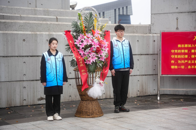 活动伊始,公司团员代表姚磊致哀悼词。他表示,百年来,正是一代代革命先烈以热血浇灌理想,以生命践行信仰,才换来了今天日益富强的祖国。值此梨花风起清明时节,我们向革命烈士们表达沉重的哀思和崇高的敬意。全体人员齐列方阵,神情庄重,向革命烈士默哀。团支部代表献上鲜花,递送挽联。