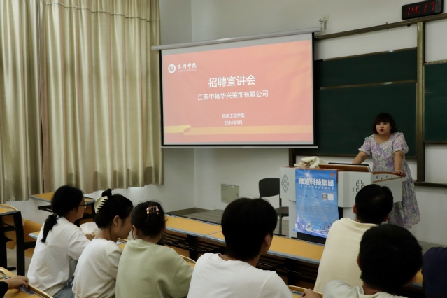 宣讲会上,江苏中核华兴装饰有限公司人事经理介绍了企业的发展理念、业务领域、招聘专业、薪资待遇等内容,并现场为同学们答疑解惑;雅迪科技集团有限公司负责人从产品研发、公司优势、面试流程、晋升体制等方面进行详细介绍,鼓励同学们积极投递求职简历。