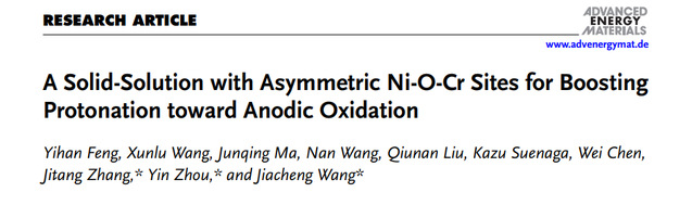 近日,公司周银博士在新能源器件研究领域取得重要进展,其作为通讯作者在TOP期刊《Advanced Energy Materials》(IF=24.7,中科院1区)发表题为“A Solid-Solution with Asymmetric Ni-O-Cr Sites for Boosting Protonation toward Anodic Oxidation”的研究论文。《Advanced Energy Materials》期刊一直处于发表各种形式的能量收集、转换和储存研究论文的前沿,为当前全球能源挑战提供解决方案。(供稿:吴国荣)