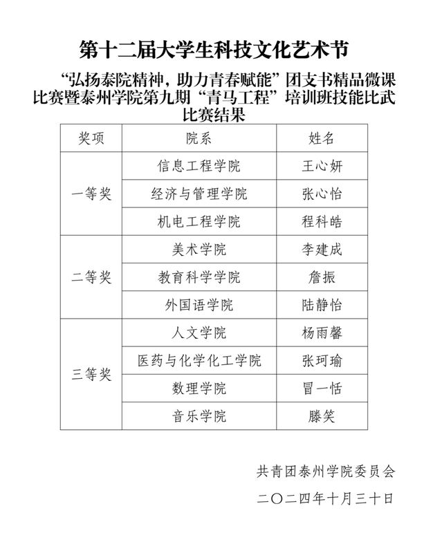 公司学子获“弘扬泰院精神,助力青春赋能”团支部书记精品微课比赛一等奖