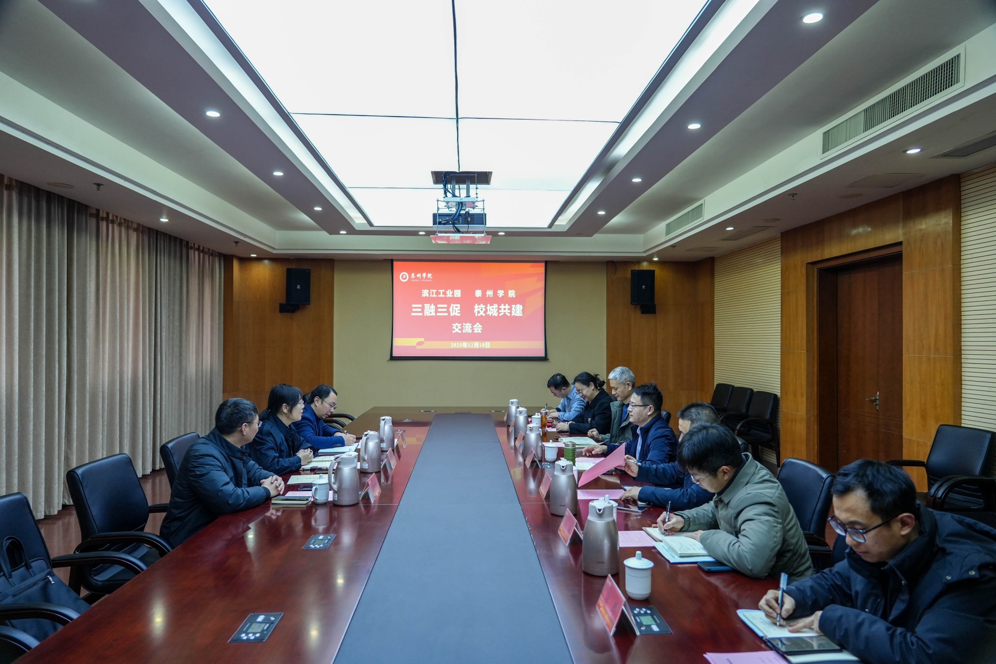 为深化“三融三促”校城共建工作,12月18日上午,泰州医药高新区(高港区)滨江工业园党工委委员、管理办公室副主任周骏图一行来公司交流。公司党委常委、副董事长汤艳峰等领导参加。
