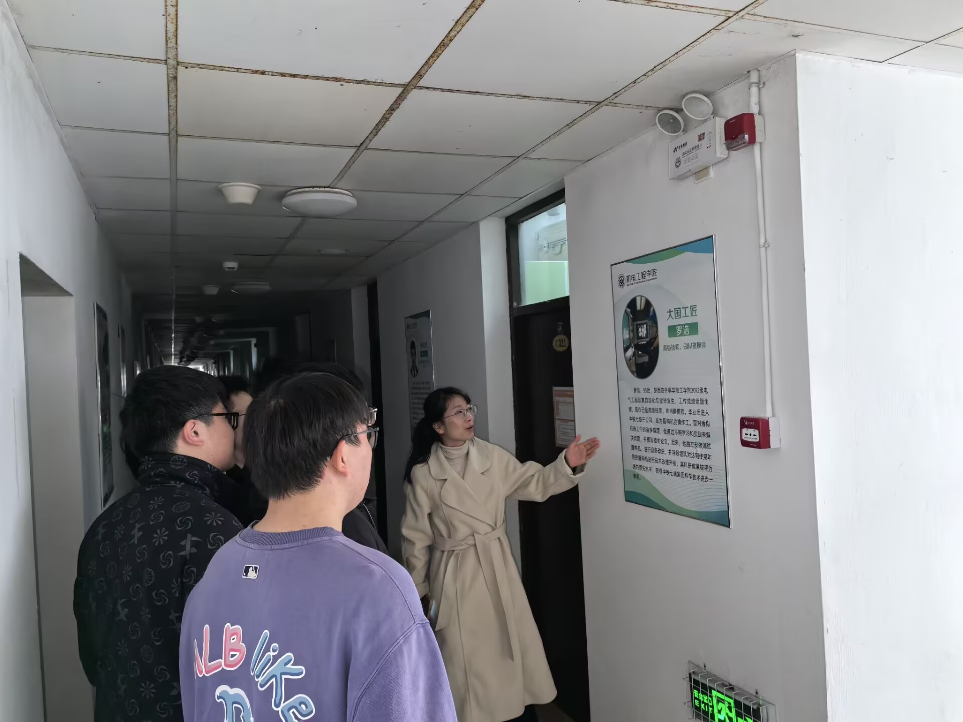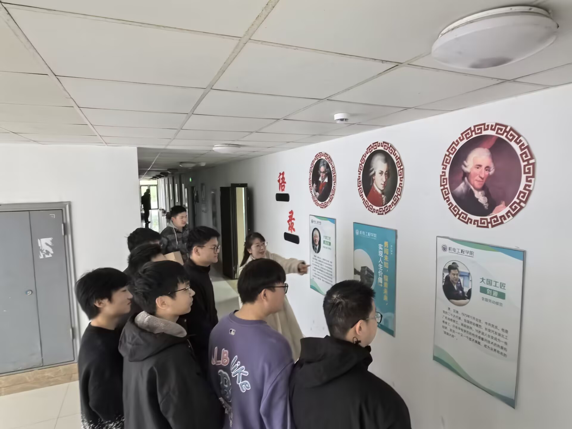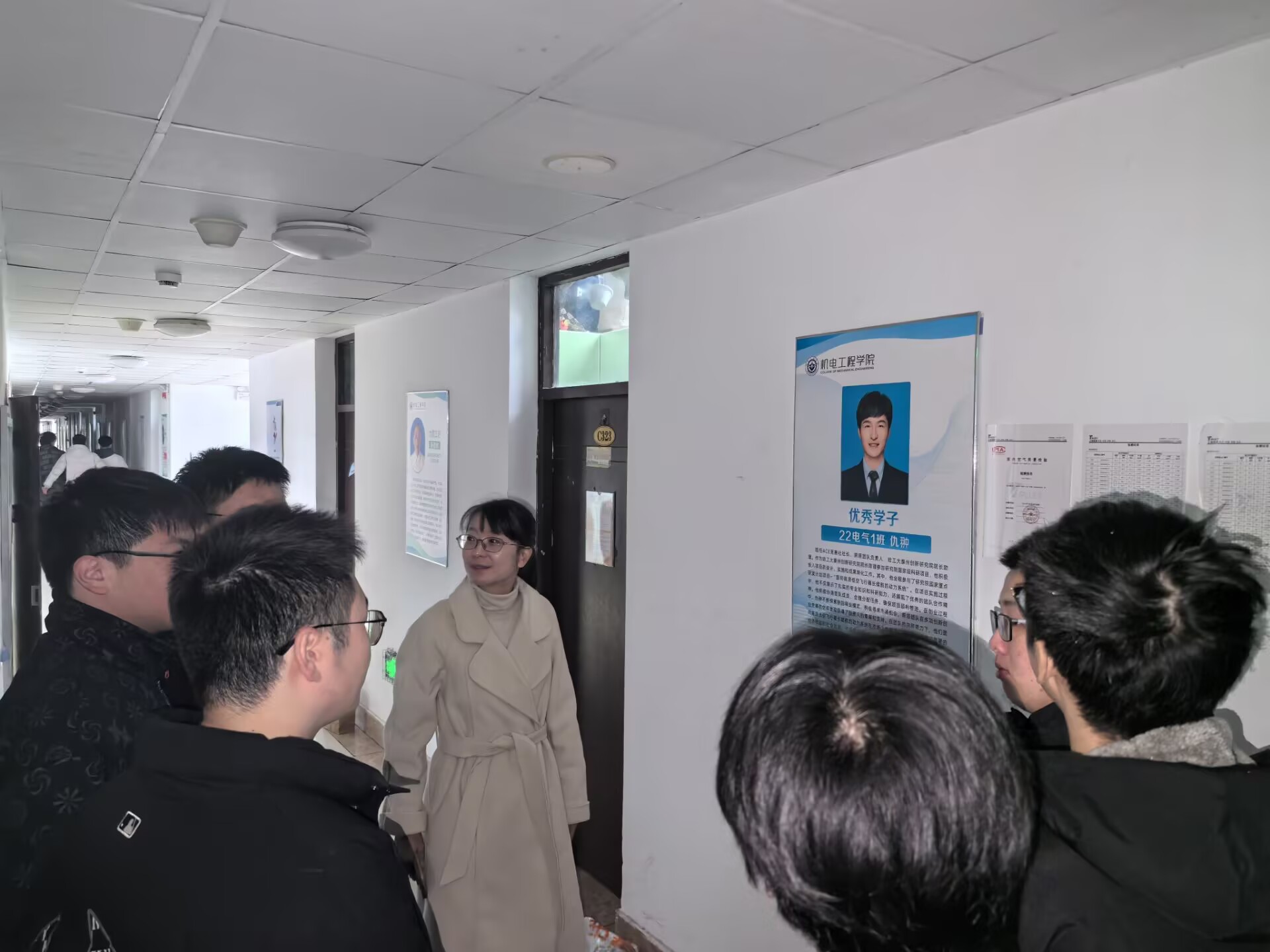 公司学工办主任陈娟走进宿舍,在精心布置的“思政文化长廊”前,为同学们讲述了大国工匠在专业技能与科技创新中的感人事迹,并分享了机电优秀学子脚踏实地、锐意进取的成长历程。她勉励大家在校期间要树立远大志向,以工匠精神为指引,做到精益求精、持之以恒、勇于创新。